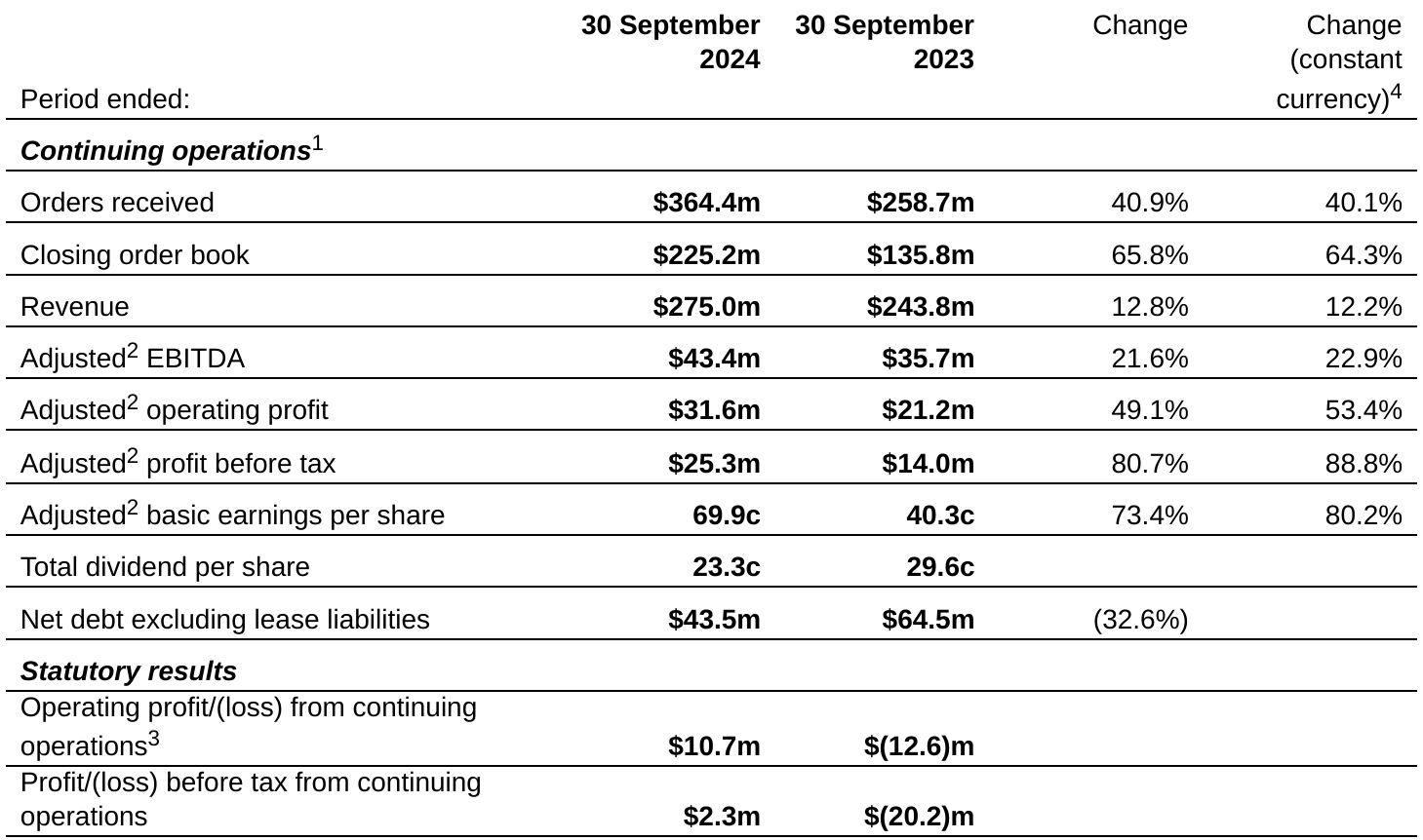 “Our end market environment remains mixed, with the challenging conditions in Automotive and Industrial Markets expected to continue into early 2025. Despite this backdrop, the resilience of our Specialist Technologies businesses and our ongoing focus on cost control gives us confidence in delivering good progress in operating margins for the full year (versus 15.9% delivered in FY 2023). Operating profit for FY 2024 is expected to be in line with market consensus.”