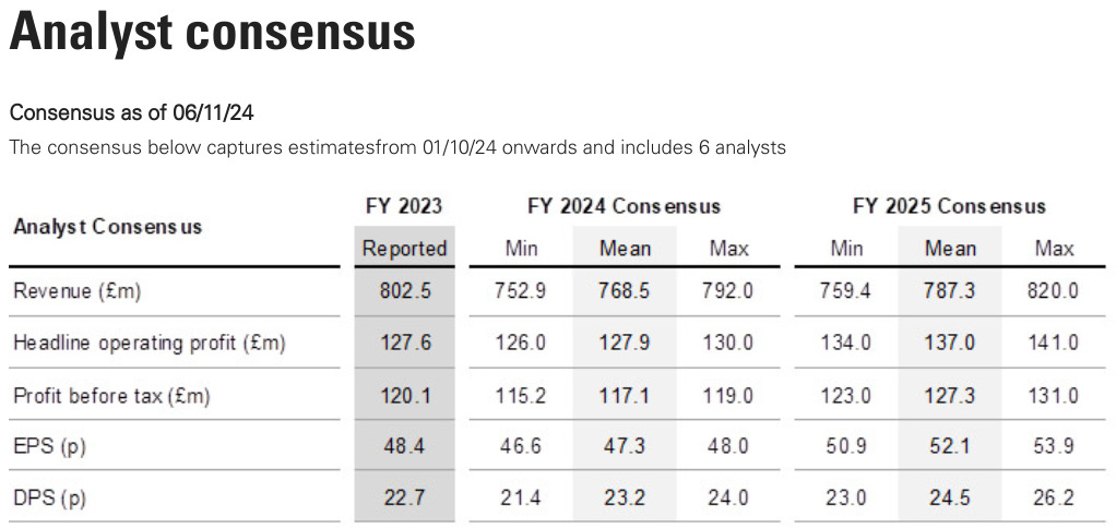 Very investor-friendly disclosure of analysts consensus from Bodycote’s website - why can’t all companies do this? -